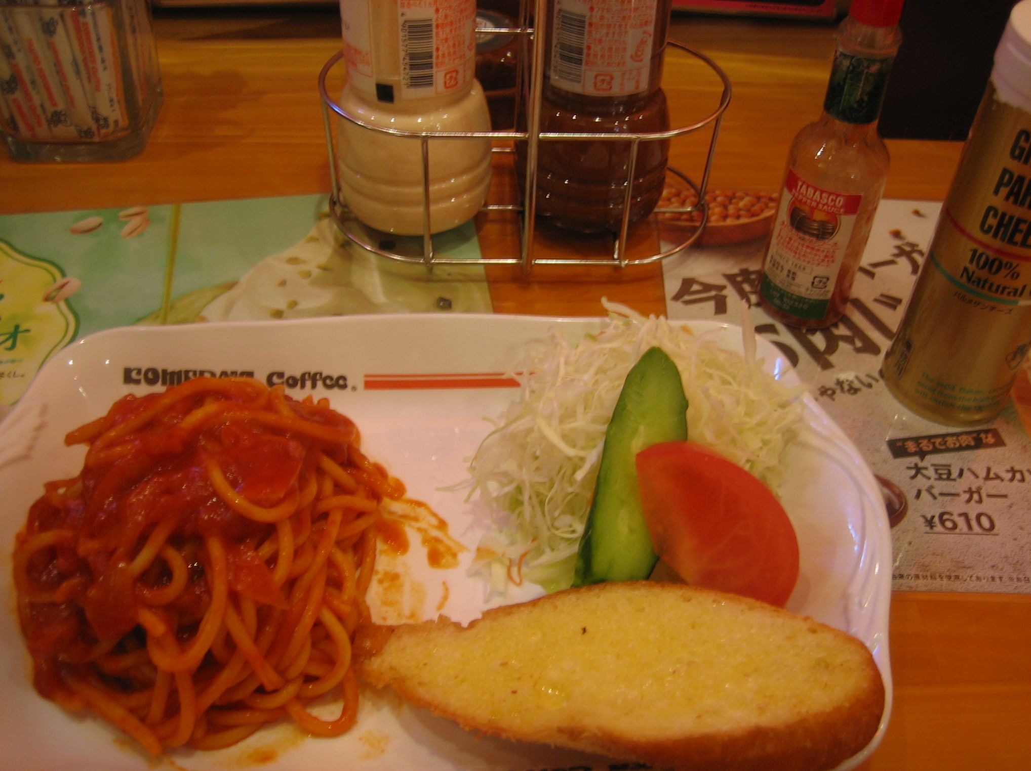 粉チーズ、タバスコ、ドレッシングx2と色々ついてきた。