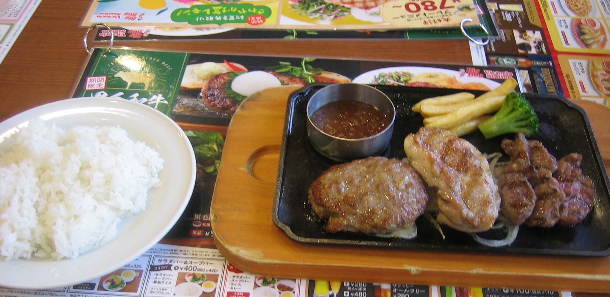 手ごねハンバーグとビーフステーキは、旨かったので、