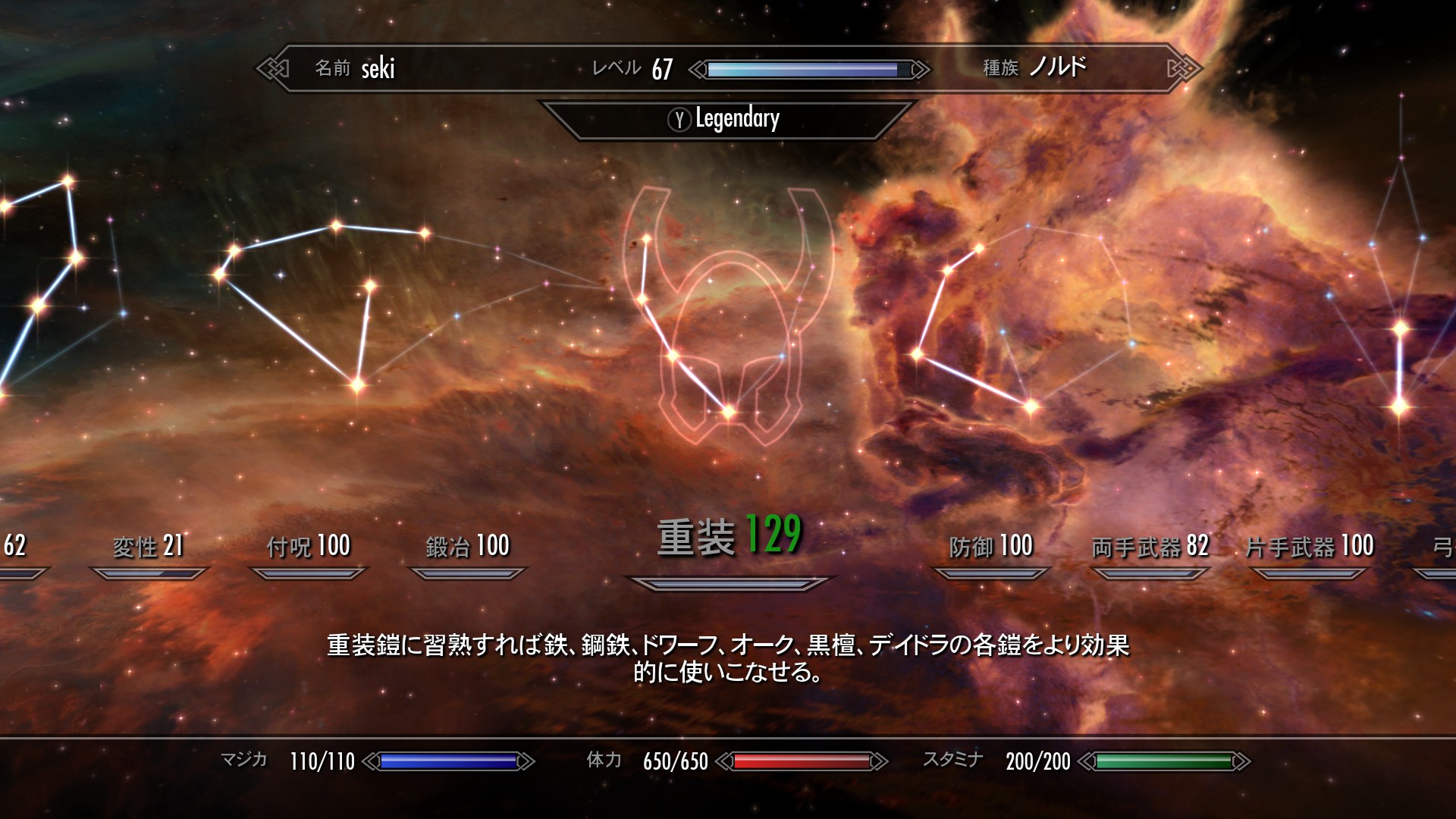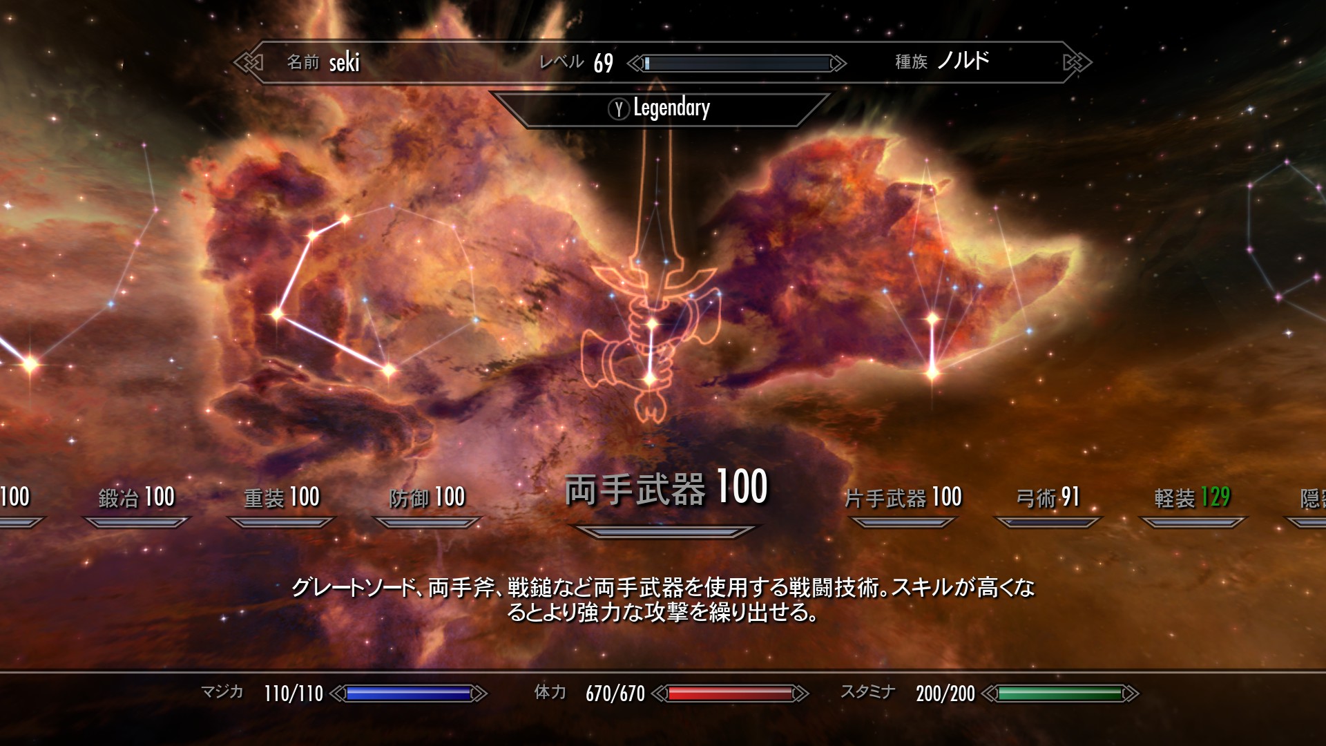 これで両手武器と重装が両方Lv100になったのに、未だにLv69。