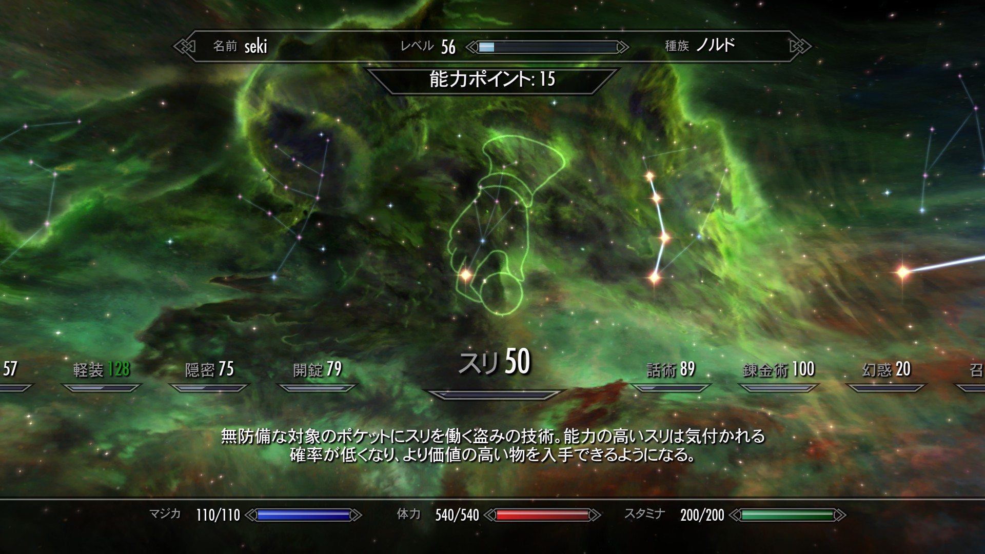 トレーナーに金払いつつ、敵からスリしつつ、ようやくスキルLvが50になった。