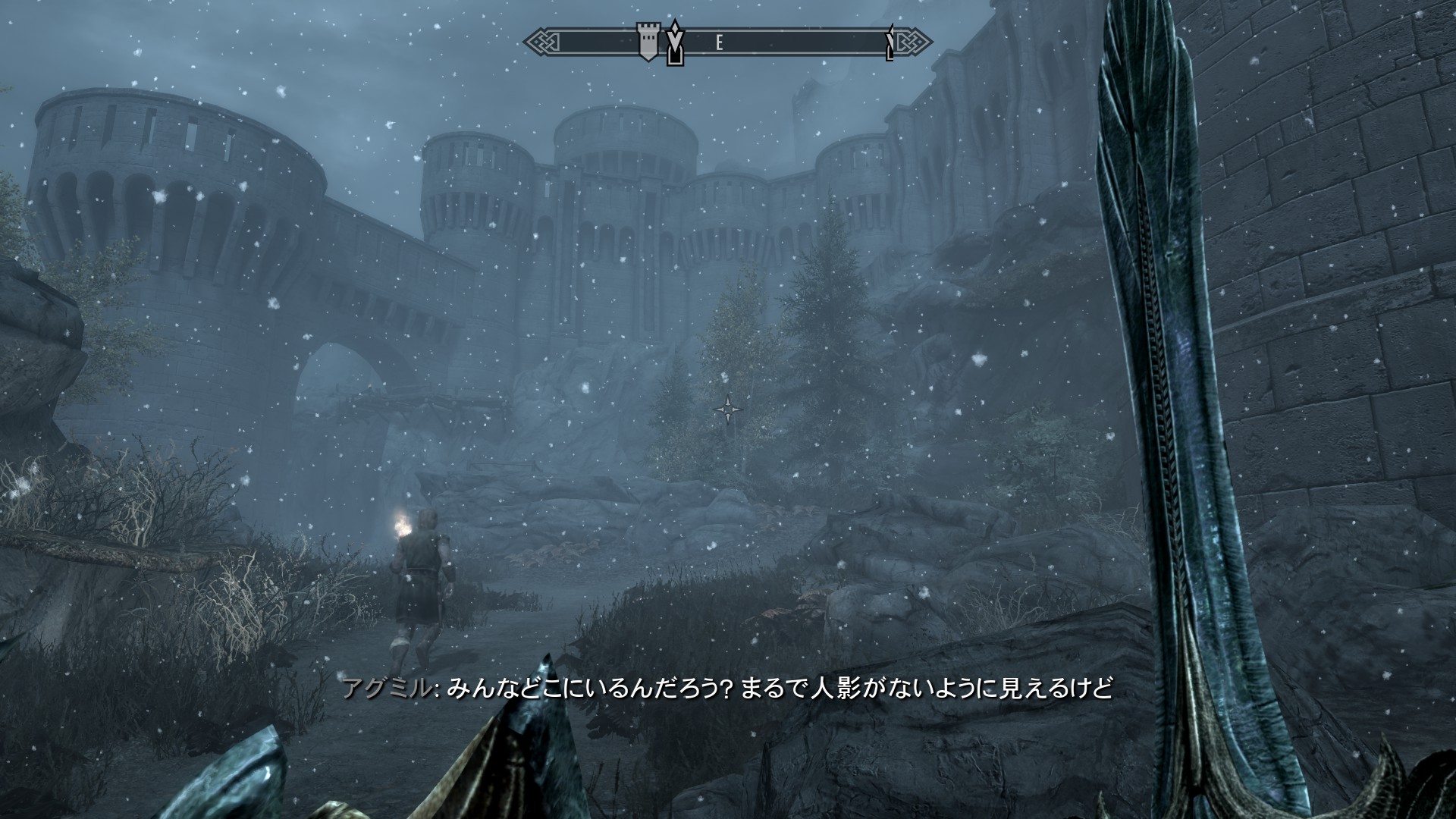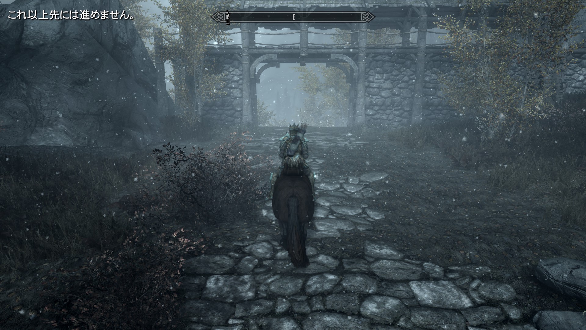今回はSkyrim地方だから、道を進めば隣の地方に行けるんだろうけど、突然のメッセージで進めなくなるの酷い。